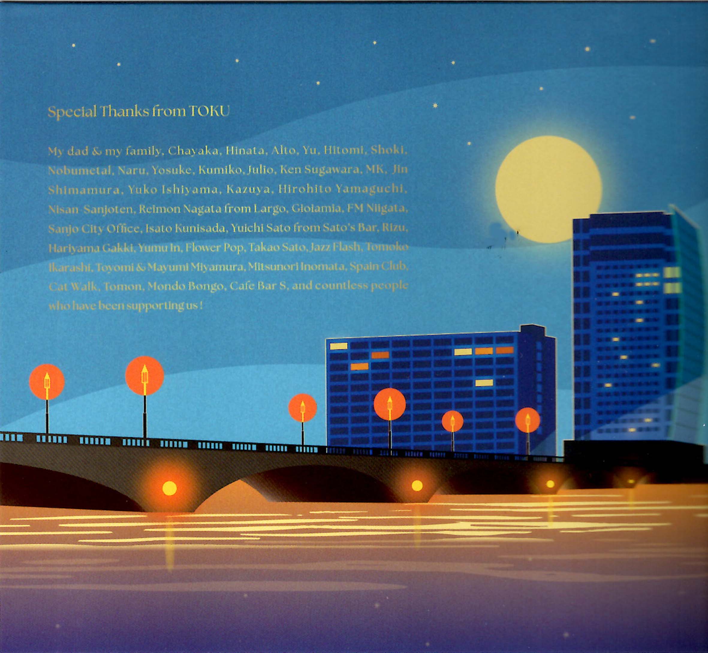 5月1日にリリースされました今回の本アルバムはTOKUが新潟で活動している若手ミュージシャン達と作った全曲メンバーによるオリジナル曲アルバムです。